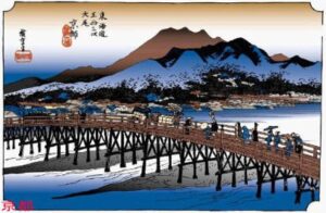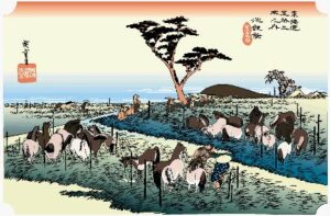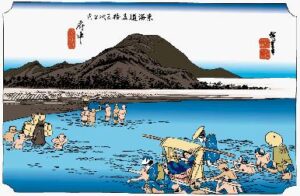 東海道五十三次四十二番目、桑名宿(その1、平成10年版) 広重、桑名、七里渡し口 東海道唯一の海路が宮(現在の熱田区)の渡しから 桑名まで、海上約25キロ、4時間の船の旅でした。今は 車で約30分です。ここ桑名の渡しです。現在は写真 の
