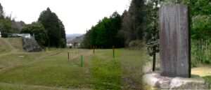 愛知・38市史跡・社寺めぐりー新城市(その10、作手地区) 新城市7回目の訪問は作手地区を巡ります(2017.9.29)。 歴史の小径。道中案内図。 。 川尻城址。上右は川尻城址のある山容(創造の森城山公園)。下は忠魂碑が建