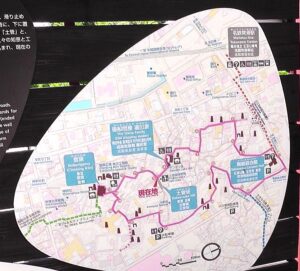 愛知・38市史跡・社寺めぐりー常滑市(その1) 土管坂の案内場所で撮ったものです「常滑やきもの散歩道」Aコースが表示されています。 名鉄常滑駅(右)を降りて「常滑やきもの散歩道」へ行く途中の歩道に展示されて いるやきもの群(左)です。
