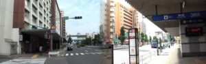 丸の内駅周辺案内(その4) 駅から東へ約600メートル、本町通りと京町通りの交差点角にある の分岐点の標識、ここから名古屋城まで約900メートル、は 伝馬町筋と本町筋から西へ行き伝馬橋を渡りすぐ右折、四間道へ行く道が美濃街道です すると2