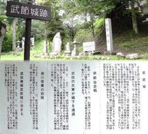 愛知・38市史跡・社寺めぐりー豊田市(その19,稲武地区) 豊田市13回目の訪問は遠隔地の市東北部稲武地区がようやく実現しました。 武節城跡。関連:。 Google マップ: 武節城跡の上に鎮座の城山神社。境内には狼煙台、物見台があ