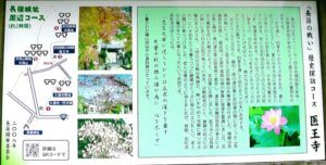 愛知・38市史跡・社寺めぐりー新城市(その1) 愛知・38市史跡・社寺めぐりー新城市をご訪問下さいまして 有難うございます。 長篠城址史跡保存館前の説明板。 保存館前の説明板拡大。 大通寺の案内板。大通寺北の医王寺には武田勝頼の本陣