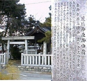 豊臣秀吉特集(その3,ねね出生地) 歴史書によればねねの出生地は尾張の国清洲の朝日村と書かれた ものが多い。そこで朝日村の厳島神社を尋ねた。由緒によれば2000 年前の石器、弥生時代の遺品が発掘された朝日遺跡(村全体の7割 が発掘対象とい