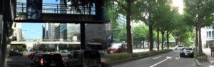 丸の内駅周辺案内図(その1) 名古屋市交通局リンク: 左は桜通線駅から東、久屋大通~車道方面。右は駅から西、名古屋駅~中村区役所方面を写す(桜通り)。 左は鶴舞線駅から北、浅間町~上小田井方面。右は駅から南、伏見~大須観音方面を写す(