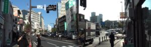 八事駅周辺案内(その1) 名古屋市交通局リンク: 名城環状線、左は駅前から東北、名古屋大学~本山方面。右は駅前から西南、瑞穂運動場東~ 新瑞橋駅方面を撮る。 鶴舞線、左は駅前から東南、植田~赤池方面。右は駅前から西北、いりなか~御器所