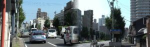 志賀本通駅周辺案内 名古屋市交通局リンク: 志賀本通駅。左:東 平安通~ナゴヤドーム矢田方面、右:西 黒川~市役所方面を撮る。 一部稲置街道と重複しています。 駅から南へ約1キロちょっとありますが、名鉄瀬戸線のすぐ南側に 鬱蒼たる森が