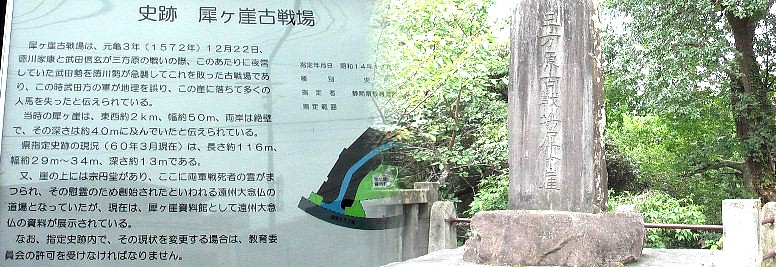 左:宗円堂、犀ヶ崖資料館として、三方原の戦いによる死者の霊をまつった遠州大念仏及び三方原の戦いに関する資料が展示されています。右:鼠小僧次郎吉の墓。
