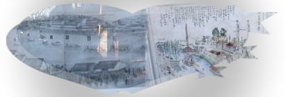 写真左は白鳥御材木場・御船蔵跡 慶長15年(1610)、福島正則が名古屋城築城のため堀川を開削の折に材料場船置場として大池が掘られ、後に木曽良材の貯木場となり、南側には船を係留しておく御船蔵が置かれた。