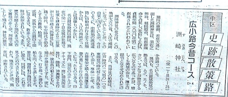 紫川関連:リンク:第1回紫川ストーリー:深田正雄氏ホームページリンク:境内にある縁結びの神と堀川端の花見桜の模様この橋(新洲崎橋)から約400メートル上流の天王崎橋までの川端はきれいな川と桜並木で大変な賑わいをしていたそうです。明治以前は広井天王、牛頭天王社、天王崎神社ともいい昔は海に面した洲崎にご鎮座の社という。所蔵の和鏡は市指定文化財です。