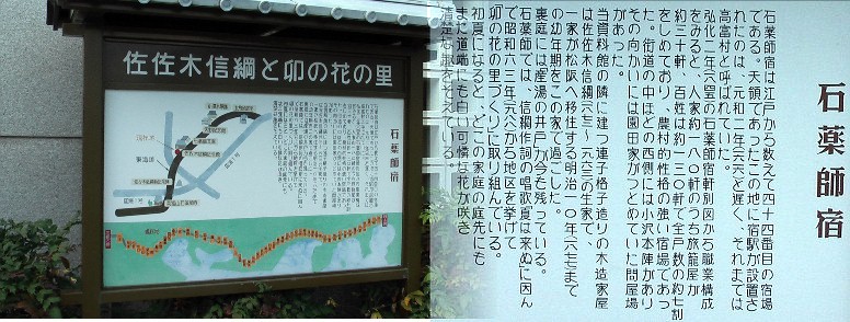 一里塚の案内板と標識一里塚の案内板と標識、右は西部丘陵から見た石薬師宿の南部方面10年版参照してください。