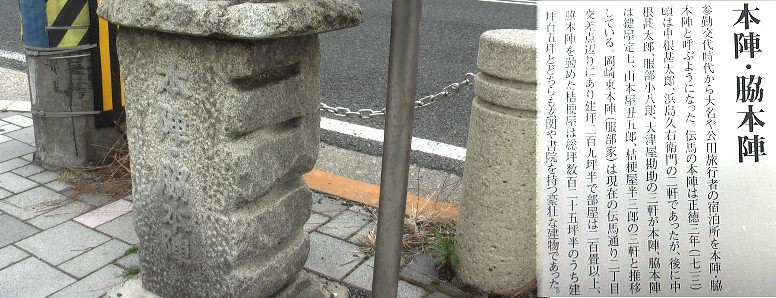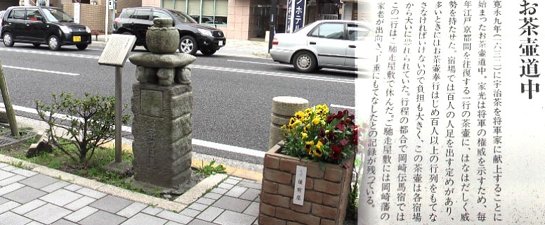 上記何れの写真も跡地を表したものではありません。全部で20基の石碑。ハイビジョン動画:岡崎宿