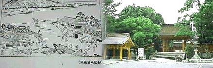 佐屋の船番所と尾張五社の一つ津島神社、図絵の中ほどの矢印がキコクの生け垣である。