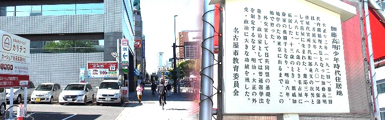 ææ²»ã®çºäžŠã¿ïŒãææ²»ã®çºäžŠã¿ïŒãææ²»ïŒïŒå¹Žä»£é ãäžå·Šã¯ãã®æ¡å æ¿ãç«ã€ä»è¿ã®åºå°è·¯éãïŒçŸåšïŒã