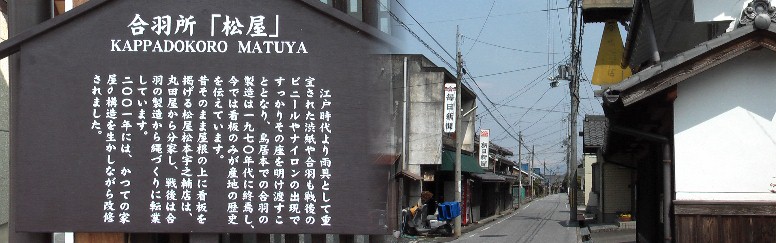 赤玉・有川家と付近の町並み。早く見事な松並木に育って下さい。第14代目のご子孫が住んでおられます。和風屋根にコンクリートの煙突が特徴のようです。