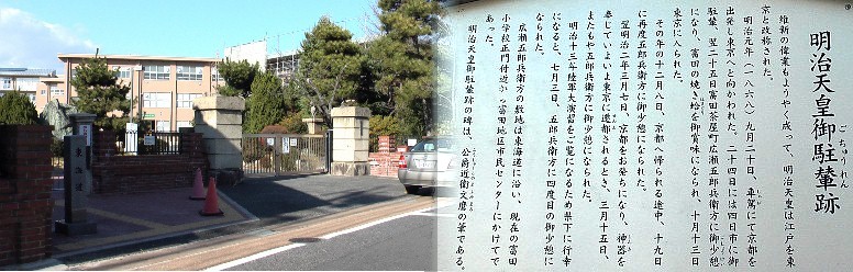 「し水の井戸」のある建福寺と陣屋跡があった中部西小学校。三滝橋と明治末期の木造三滝橋。