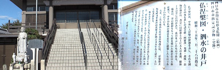 三滝橋、広重画に描かれている四日市の港方面を見た場所ではないかと言われる。左写真は四日市名物、老舗「なが餅」店と旧東海道街並み。